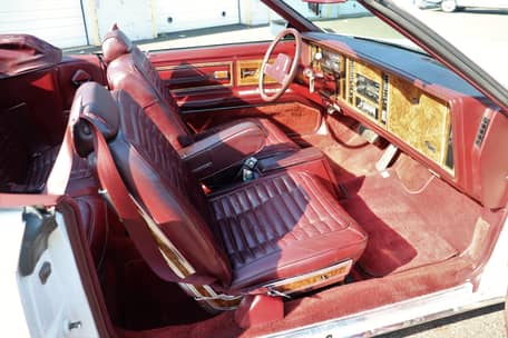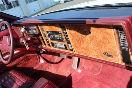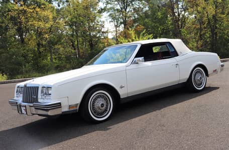 THIS… is a 1983 Buick Riviera finished in white with a red leather interior.