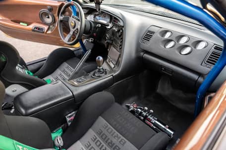 • Power comes from a 2JZ-GTE 3.0-liter twin-turbocharged inline-6, rated at 320 horsepower and 315 lb-ft of torque in stock form. Due to the modifications performed to this Supra, it almost certainly produces significantly more power, but a dyno sheet was not provided to confirm. Output is sent to the rear wheels via a 6-speed manual transmission.