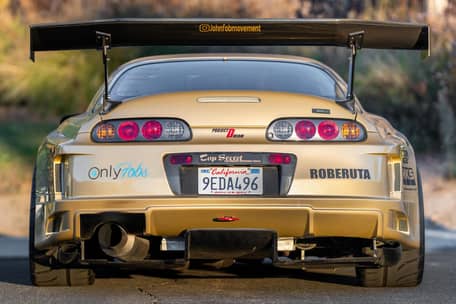 THIS… is a 1998 Toyota Supra Turbo, finished in custom gold pearl with a black interior.