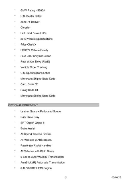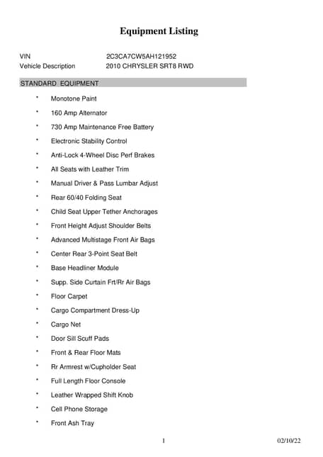 - Factory equipment on this 300C includes Brembo brakes, heated front seats, a Kicker 13-speaker premium audio system, a dealer-installed rear entertainment system in the headrests, and the SRT Option Group II, which upgrades to a more modern infotainment system with navigation and SiriusXM satellite radio. The selling dealer reports no modifications.