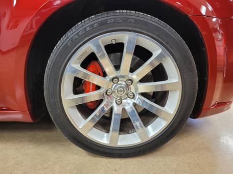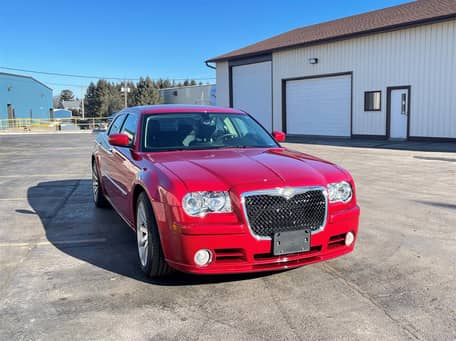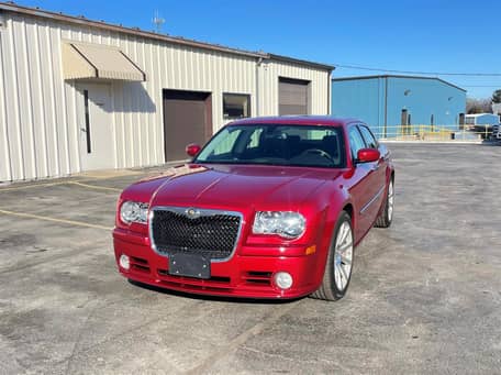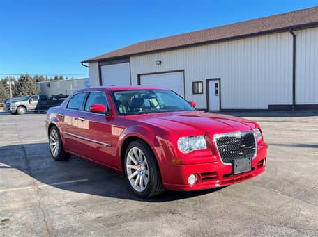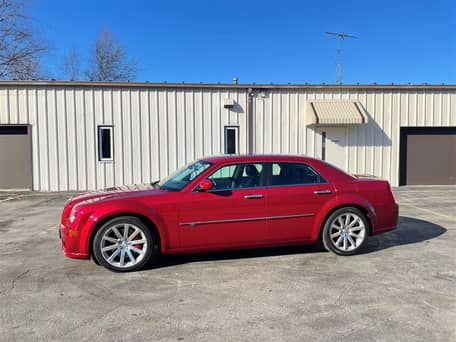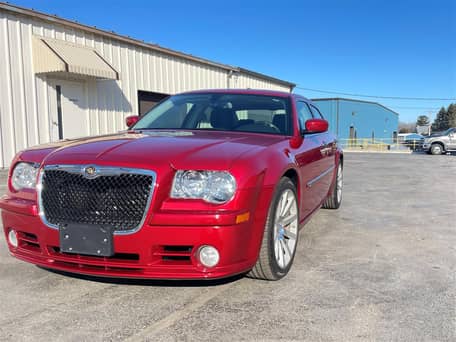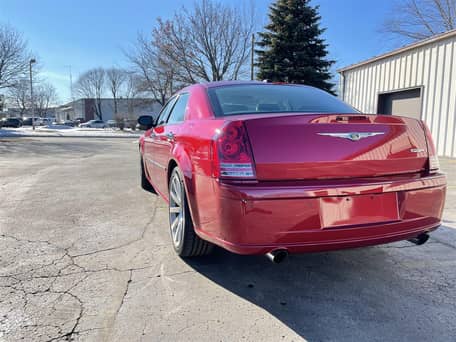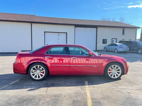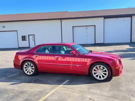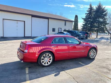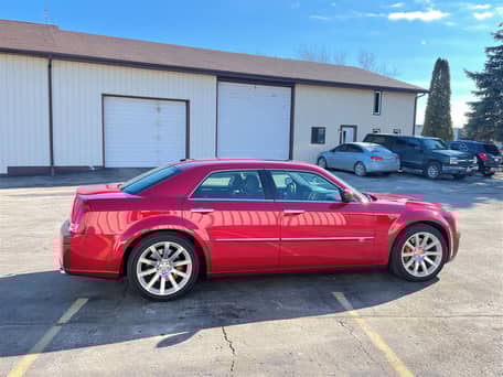 THIS… is a 2010 Chrysler 300C SRT8, finished in Inferno Red with a Dark Slate Gray interior.