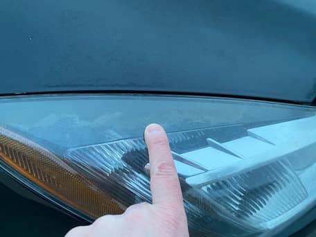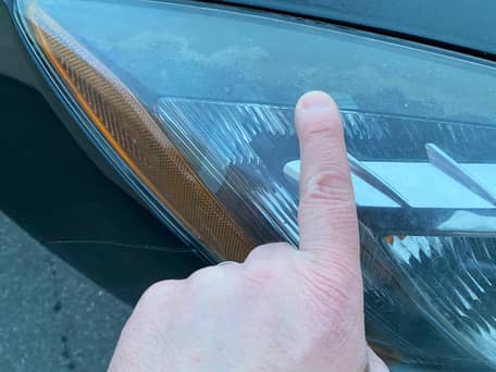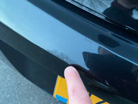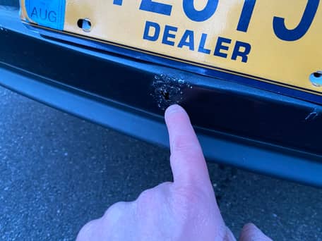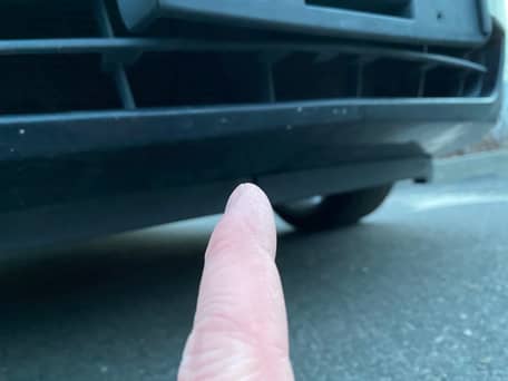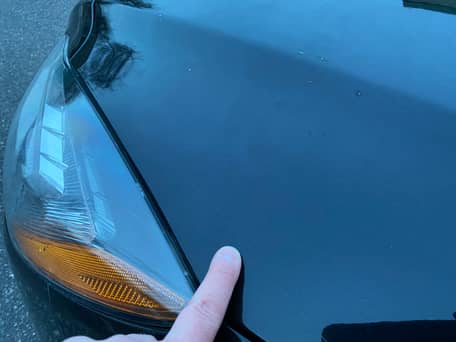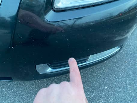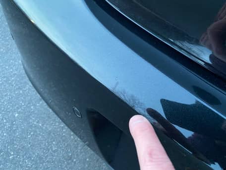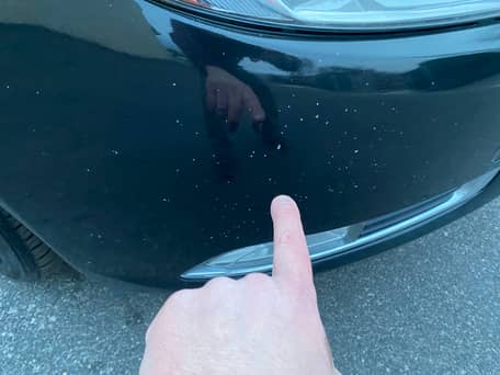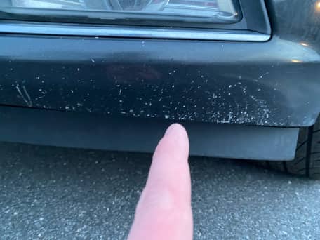 • Scratches on the bumpers, on the hood, and on the driver-side mirror cap
