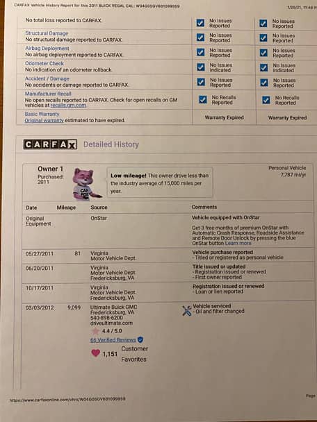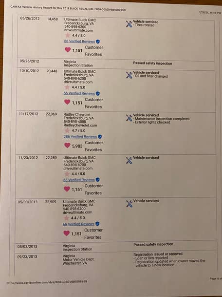 Service records shown in the gallery detail most of the repairs and maintenance performed on this Regal since 2019. According to the seller, recent work includes: