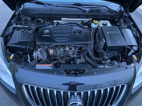 • This Regal is powered by an “LHU” 2.0-liter turbocharged 4-cylinder engine, which in stock form produces 220 horsepower and 258 lb-ft of torque. Those numbers are likely increased on this car due to the Trifecta Performance tune, but no dyno sheet is available.