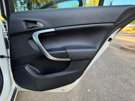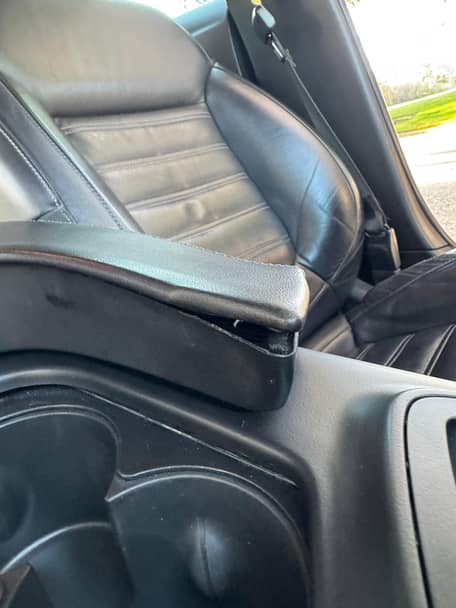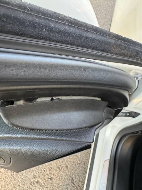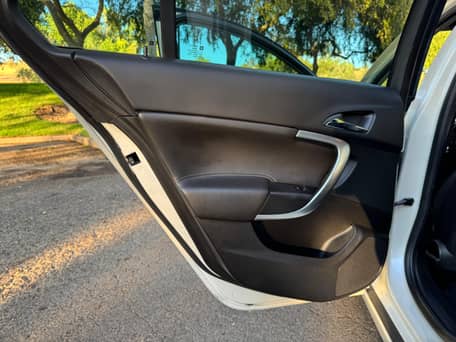 - Torn center armrest and driver-side rear door panel trim