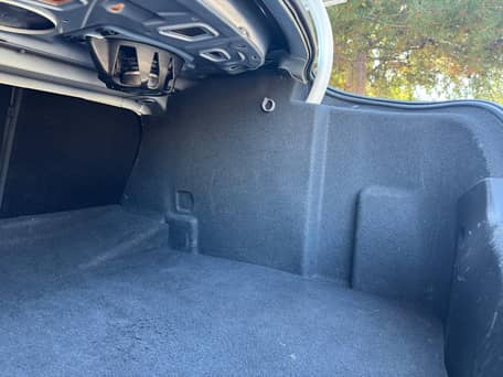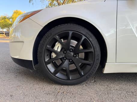 - Factory equipment includes 19-inch wheels, HiPer-Strut front suspension, Brembo front brakes, a rear spoiler, leather upholstery, heated and power-adjustable front seats, dual-zone automatic climate control, and a Harman/Kardon sound system. Modifications reported by the seller include black finish on the wheels and tinted windows.