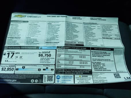 A window sticker is provided in the photo gallery, and a partial list of notable equipment includes: