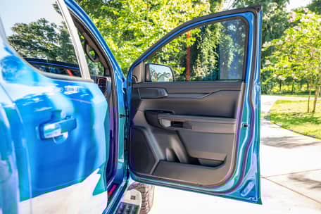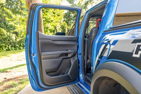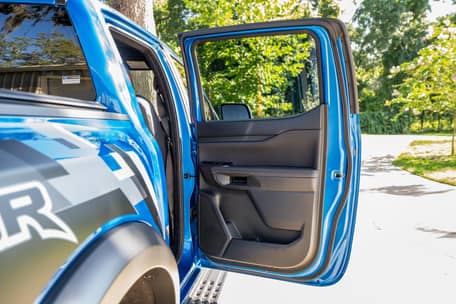 THIS… is a 2024 Ford Ranger Raptor, finished in Velocity Blue Metallic with an Ebony interior.
