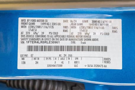 - Equipment Group 800A (3.0L EcoBoost V6 engine, Fox Racing Shocks with Live Valve technology, 12-inch touchscreen, upfitter switches, 120V/400W in-cab and in-bed power outlets, adaptive cruise control, 360-degree camera)